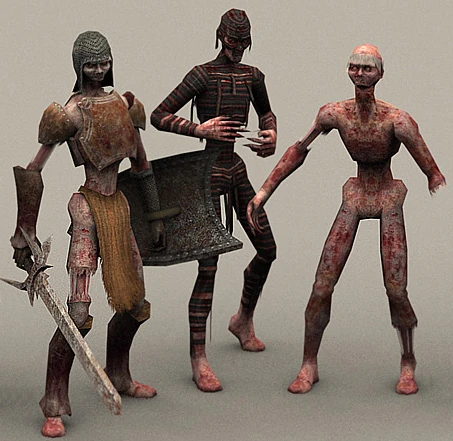 Brought to life by necromantic magic, zombies are empty husks that retain no memories of their lives among the living. They are utterly brainless, and merely follow the instructions they were given during the reanimation process. Zombies tend to ignore dangerous obstacles, such as fire, and never flee.